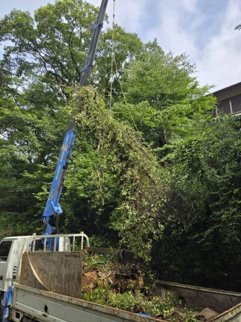 クレーン車を使って危険な枯れ木もスッキリ綺麗に仕上げました。